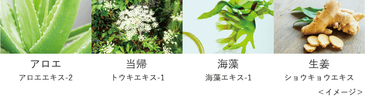 その他の成分:BG、HEDTA・3Na2水塩、PEG-8、POEオレイルエーテル、POEステアリルエーテル、アスコルビン酸、アラキルアルコール、アロエエキス-2、エタノール、ショウキョウエキス、ステアリルアルコール、ステアルトリモニウムクロリド、タウリン、トウキエキス-1、マイクロクリスタリンワックス、モノエタノールアミン、ワセリン、海藻エキス-1、無水亜硫酸Na